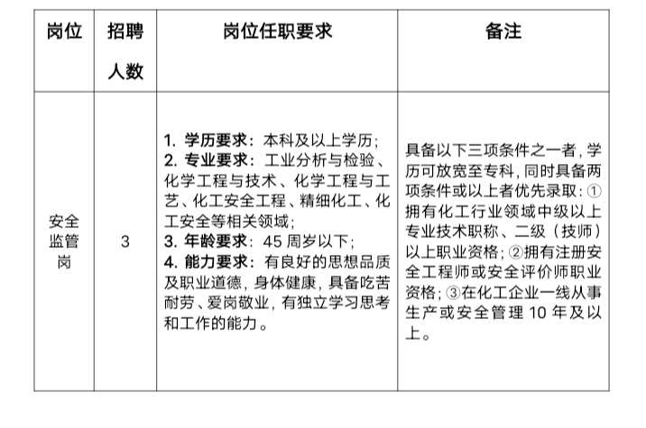 聊城润弛产业园建设运营有限公司(简称“润弛公司”)是聊城市茌平区土地发展集团有限公司全资子公司,主要经营范围是化工园区基础设施建设、管理、运营;在园区内进行成片土地开发、经营;物业管理;项目管理咨询服务;科技孵化园区运营、管理等。根据应急管理部《化工园区安全风险排查治理导则(试行)》《化工园区安全整治提升“十有两禁”释义》《关于修订<化工园区安全风险评估表><化工园区安全整治提升“十有两禁”释义>部分条款的通知》的相关要求,现面向社会公开招聘化工园区专业监管人员3名,考试委托第三方聊城市海融电子商务有限公司组织实施,现将有关事项公告如下: