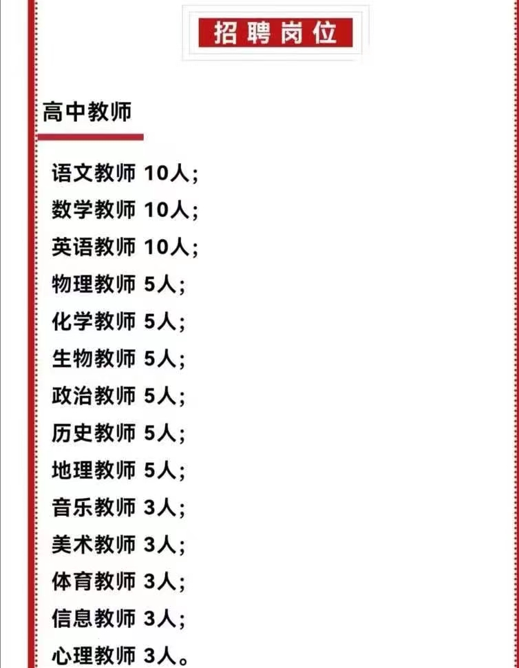 聊城致远高级中学坐落于聊城市冠县,学校位于冠县建设路与南环路交叉口东500米,总占地 万多平方米,总建筑面积37874.2平方米。聊城致远高级中学原基础是冠县育才双语学校。为满足高中办学要求,经市县教体局批准,现招聘部分优秀高中教师,岗位如下: